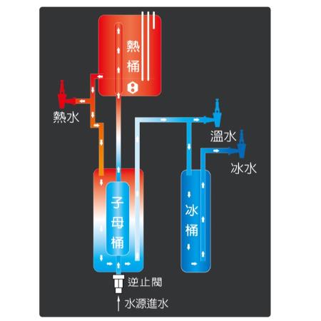 冷熱交換設計,溫冰水經高溫煮沸再冷卻出水